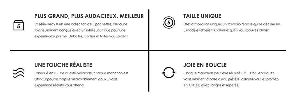 Les différentes textures à l'intérieur sont idéales pour explorer une variété de sensations afin de trouver celle qui vous procure le plus de plaisir. Peu importe l'oeuf choisi, vous aurez l'impression d'être à l'intérieur d'un vagin ou encore l'impression de vivre une véritable fellation buccale. Ainsi, vous pourrez prendre du plaisir seul où et quand vous le voulez !