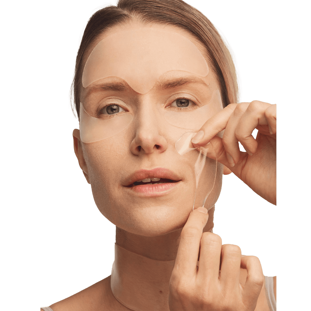 2. Enlevez doucement le film et appliquez le patch sur la zone souhaitée. Utilisez les patchs pendant quelques heures pour une réparation rapide ou pendant la nuit pour en voir tous les avantages.