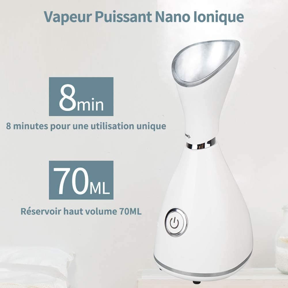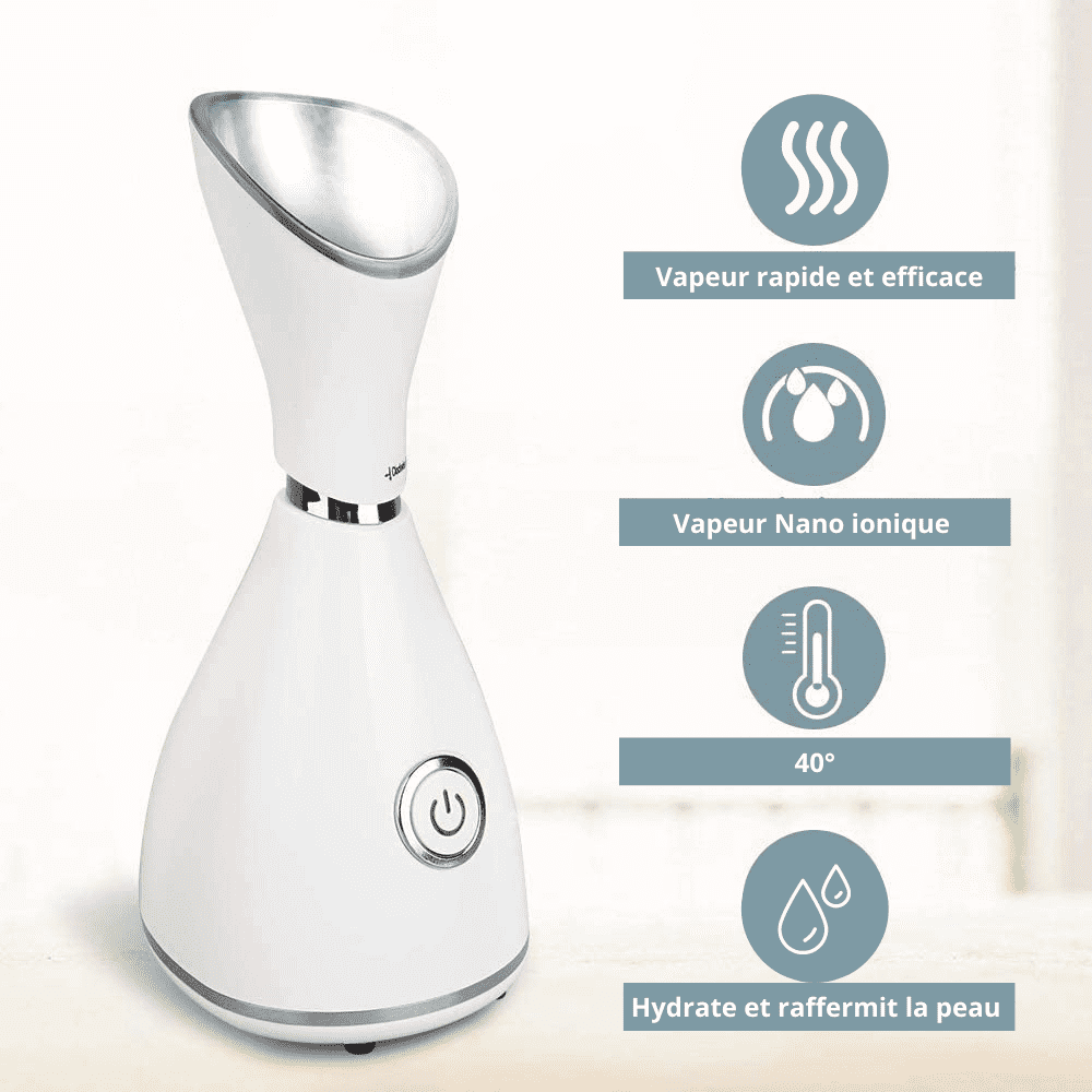 Le sauna facial est un appareil d’électro-beauté spécialement conçu pour prendre soin de votre visage. C'est un nouveau type de vaporisateur générant de la vapeur nano-ionique. Les ions offrent une meilleure hydratation de la peau qui viennent compléter l’action de la vapeur d’eau sur le visage. La fonction ionique permet d’avoir une peau plus douce et plus tonique et elle agit sur les tissus cutanés en diminuant les ridules et rides !