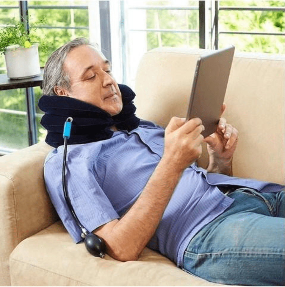 Ce coussin gonflable de traction permet de soulager rapidement les douleurs aux cervicales, de détendre votre nuque et rendre votre quotidien plus vivable !