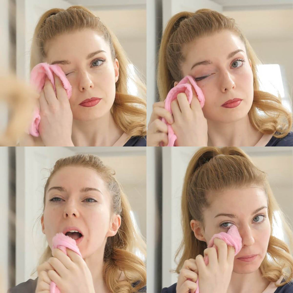 Fini d'utiliser plusieurs produits pour se démaquiller avec notre Serviette démaquillante lavable et réutilisable. Fond de teint, mascara waterproof, eyeliner, rouge à lèvres et plus encore, rien ne résiste à Make Up Eraser !